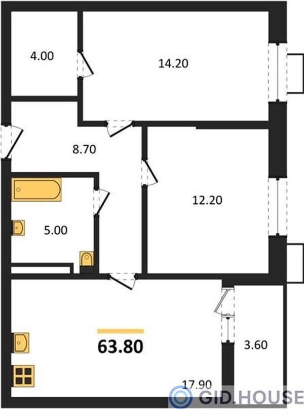 2-комнатная — 63,8 м²