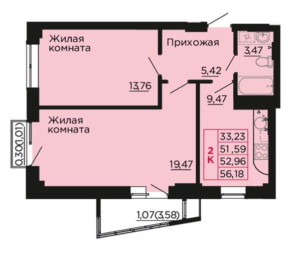2-комнатная — 52,8 м²