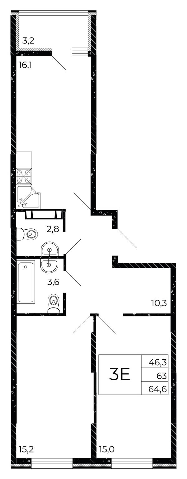 3-комнатная — 64,3 м²