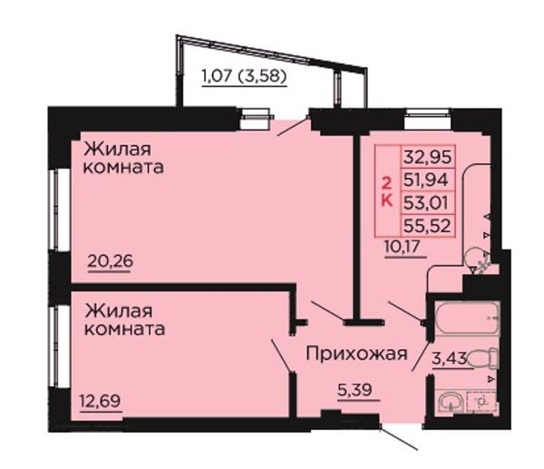 2-комнатная — 52,5 м²