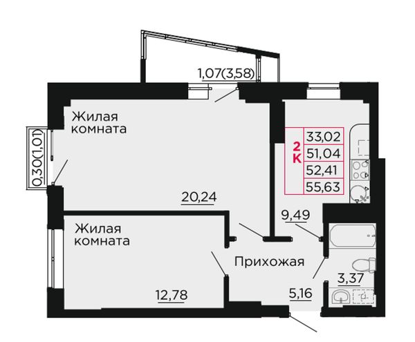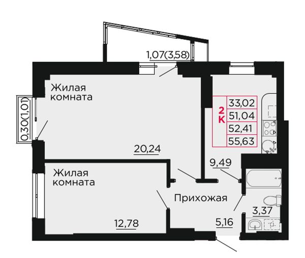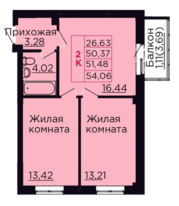 2-комнатная — 51,48 м²