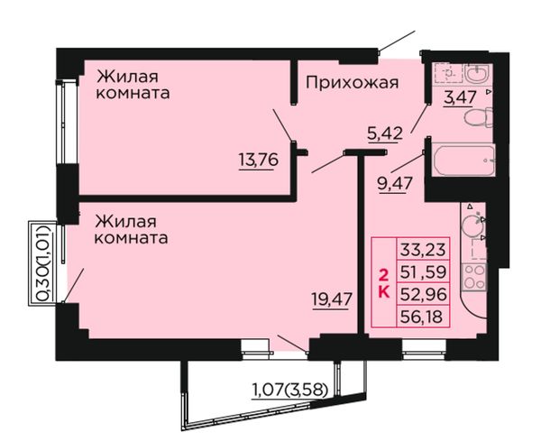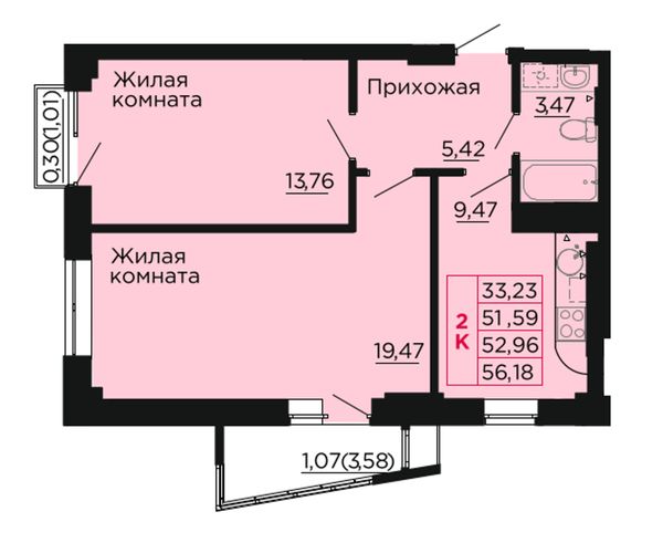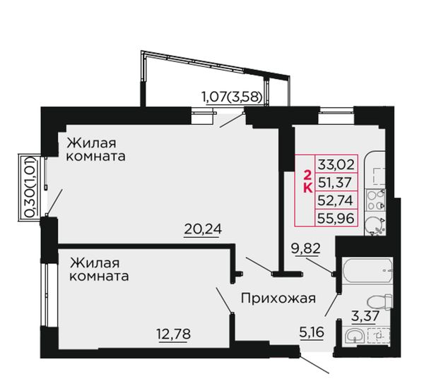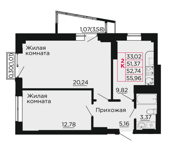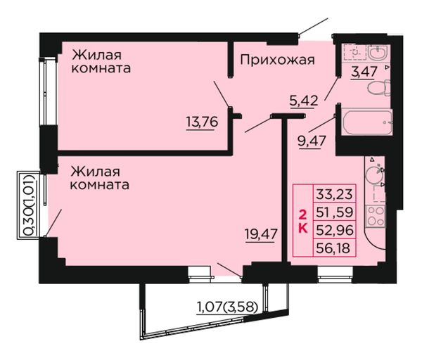 2-комнатная — 52,8 м²
