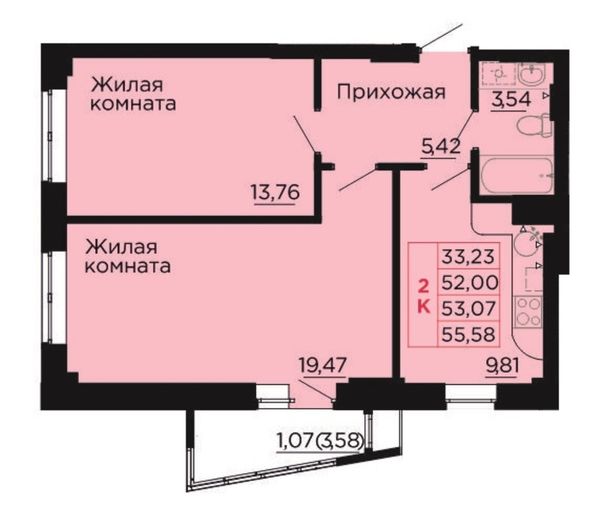 2-комнатная — 53,5 м²