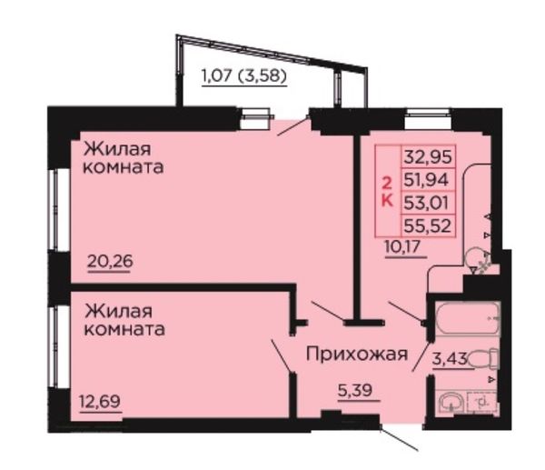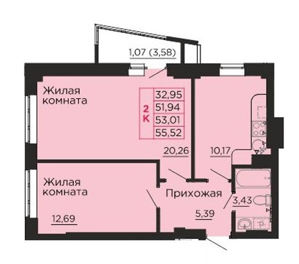 2-комнатная — 53,2 м²
