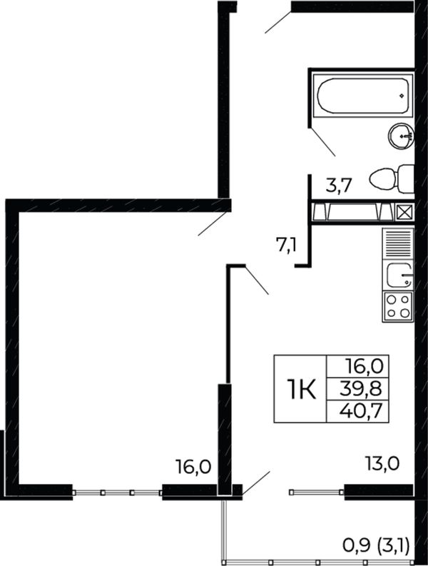 1-комнатная40,7 м²Ростовская область, Ростов-на-Дону, Советский, 6.2