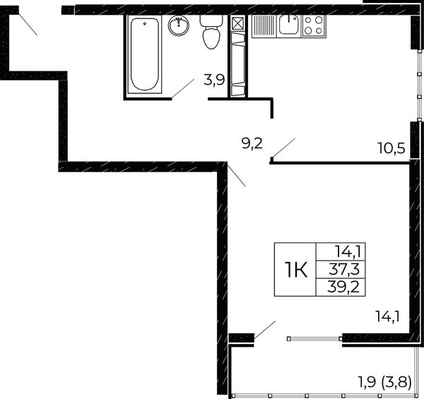 1-комнатная39,2 м²Ростовская область, Ростов-на-Дону, Советский, 5.3