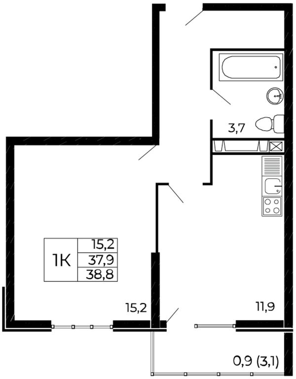 1-комнатная38,8 м²Ростовская область, Ростов-на-Дону, Советский, 6.3