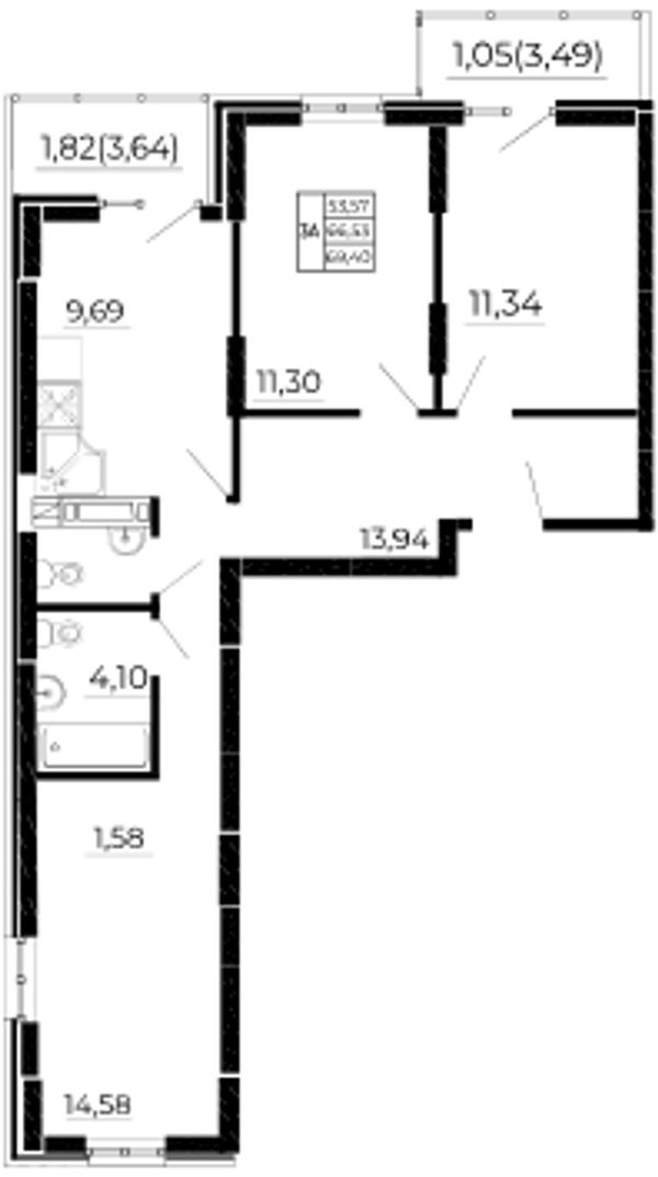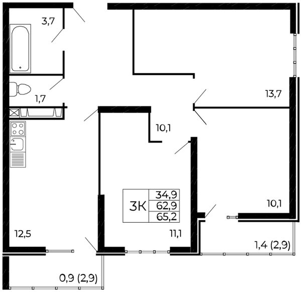3-комнатная — 65,2 м²