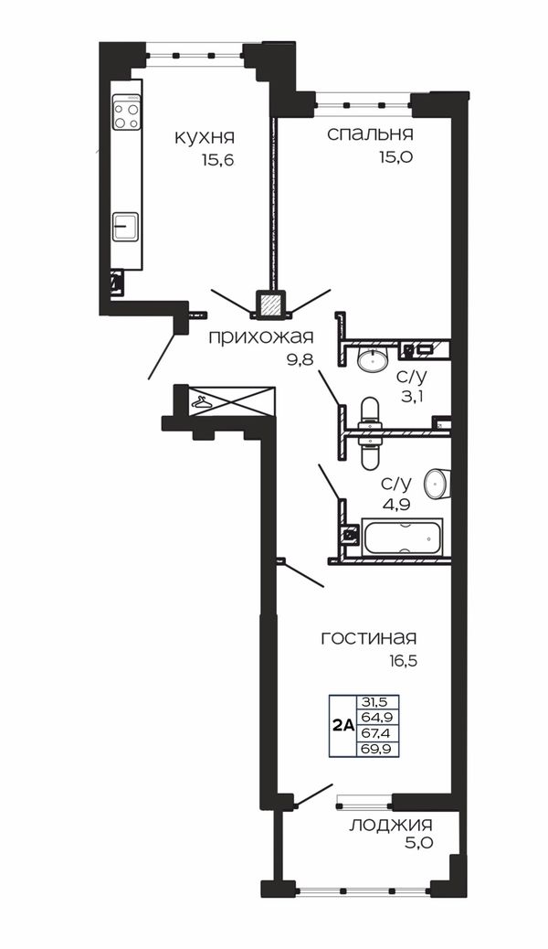 2-комнатная — 69,9 м²