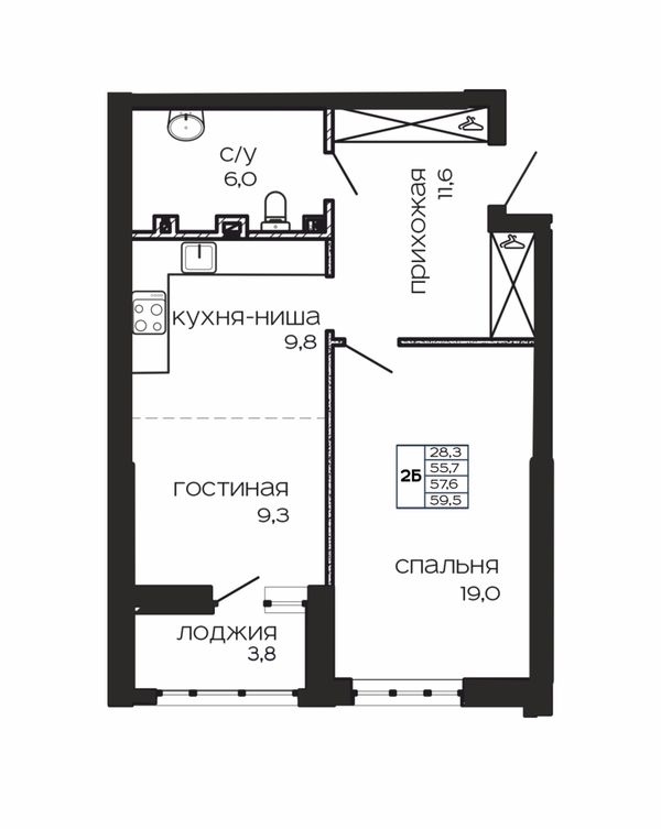 2-комнатная — 60,3 м²