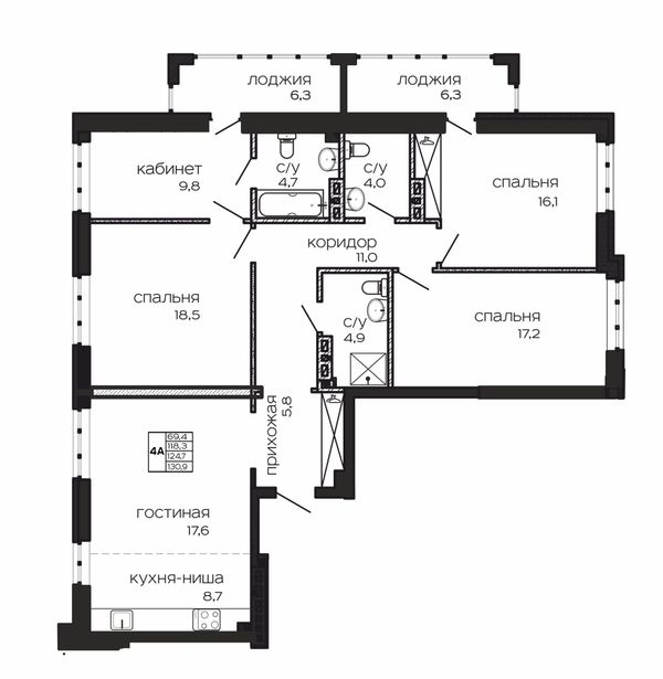 Купить квартиру с четырьмя и более комнатами в ЖК «Театрал» в Ростове‑на‑Дону