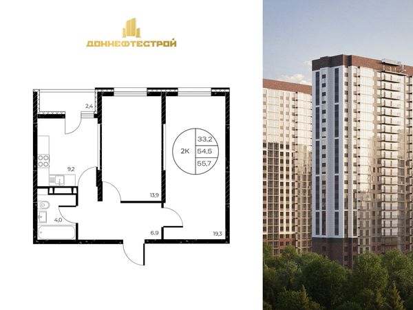 2-комнатная54,4 м²Ростовская область, Ростов-на-Дону, Пролетарский, Театральный проспект, 62