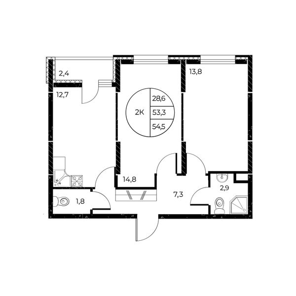 2-комнатная54,8 м²Ростовская область, Ростов-на-Дону, Пролетарский, Театральный проспект, 62