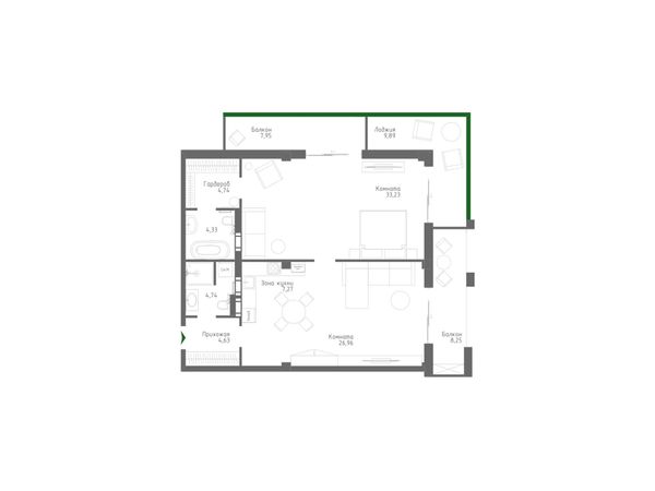 2-комнатная — 84,83 м²