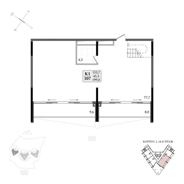 1-комнатная — 199 м²
