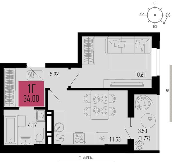 Купить однокомнатную квартиру в ЖК «Абрикосово» в Краснодаре