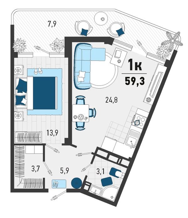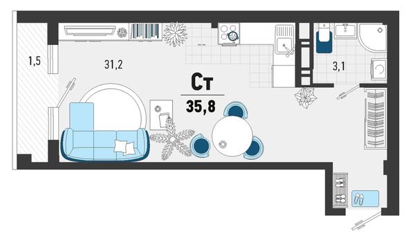 1-комнатная — 34,9 м²