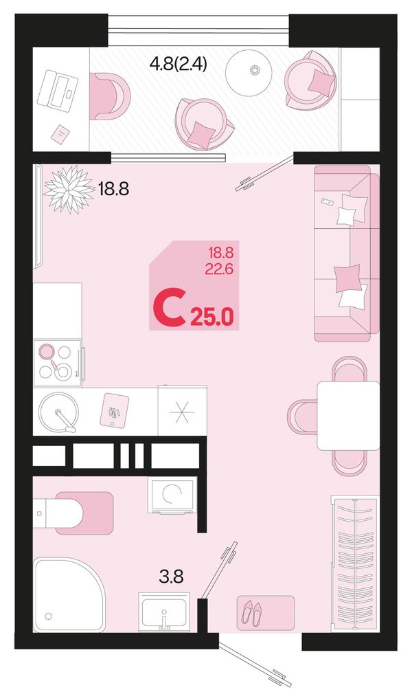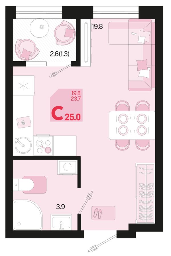 1-комнатная — 25,8 м²