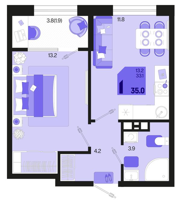 1-комнатная — 35,4 м²