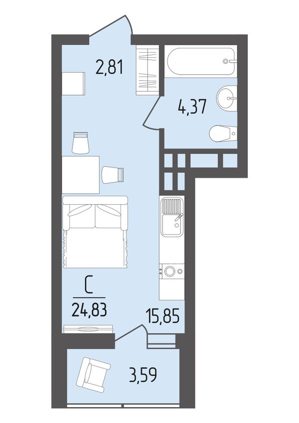 Студия — 24,83 м²