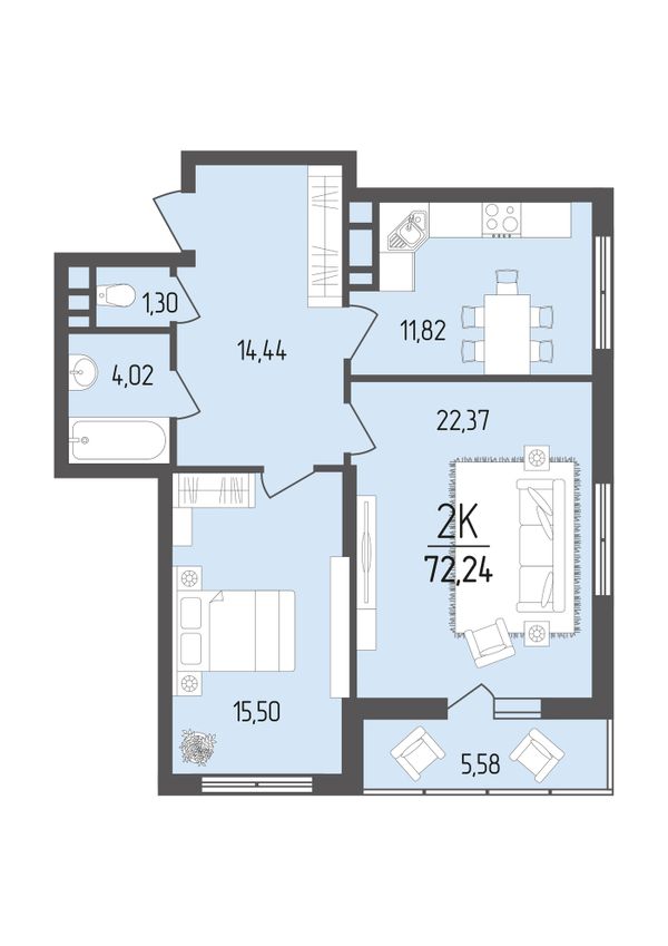 2-комнатная — 72,24 м²