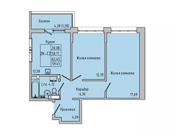 2-комнатная — 59,45 м²