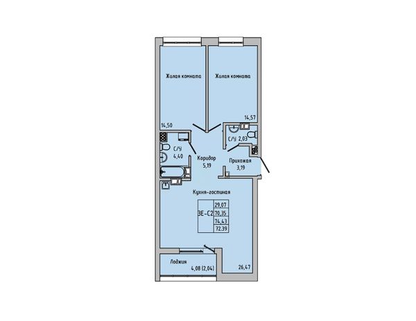 3-комнатная — 72,39 м²
