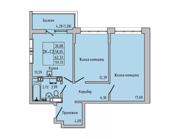 2-комнатная — 59,33 м²