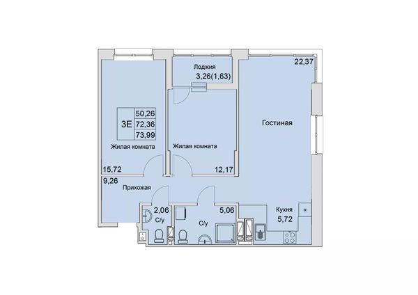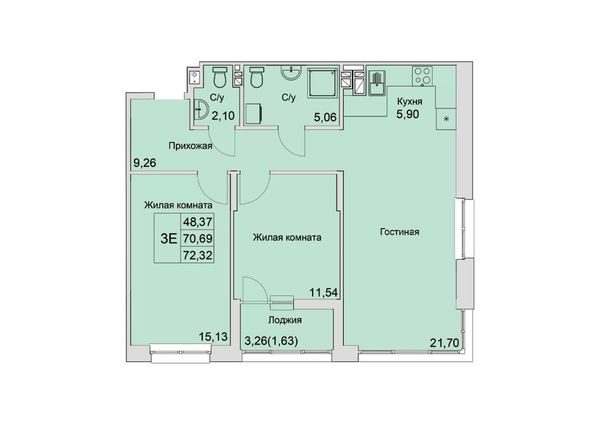3-комнатная — 72,32 м²
