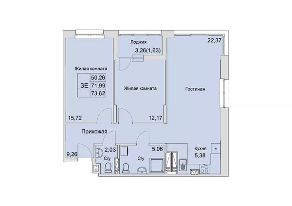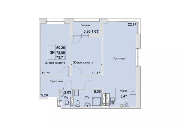 3-комнатная — 73,71 м²