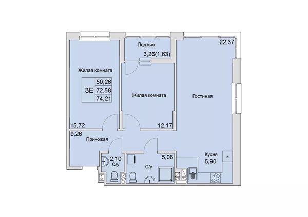 3-комнатная — 74,21 м²