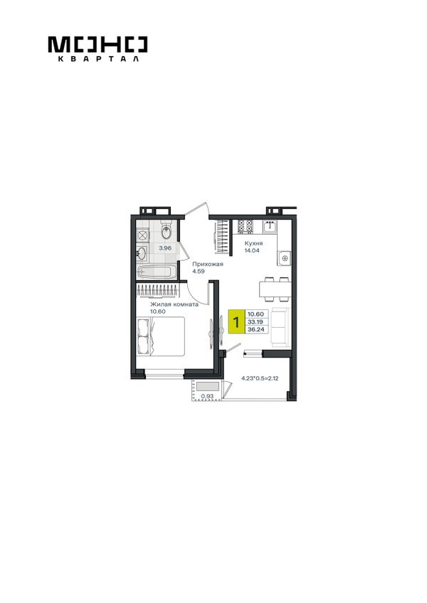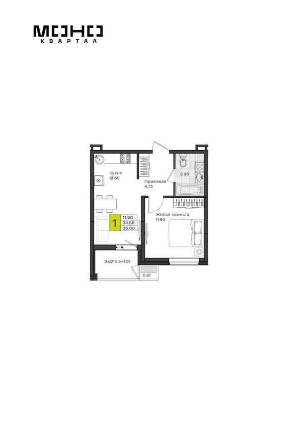 1-комнатная — 36,24 м²