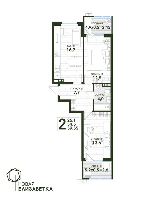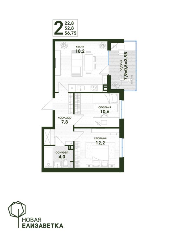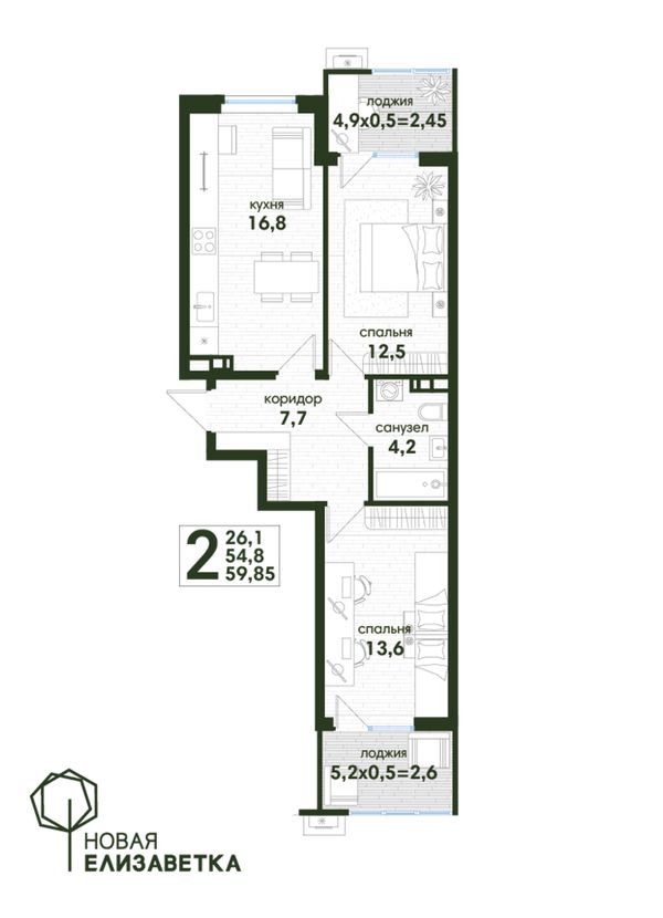 Купить двухкомнатную квартиру в ЖК «Новая Елизаветка» в Краснодаре