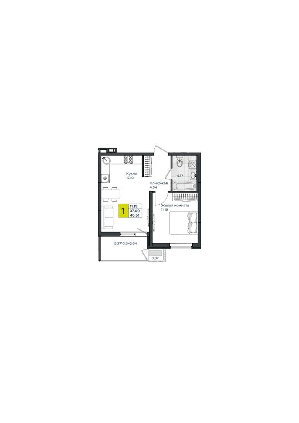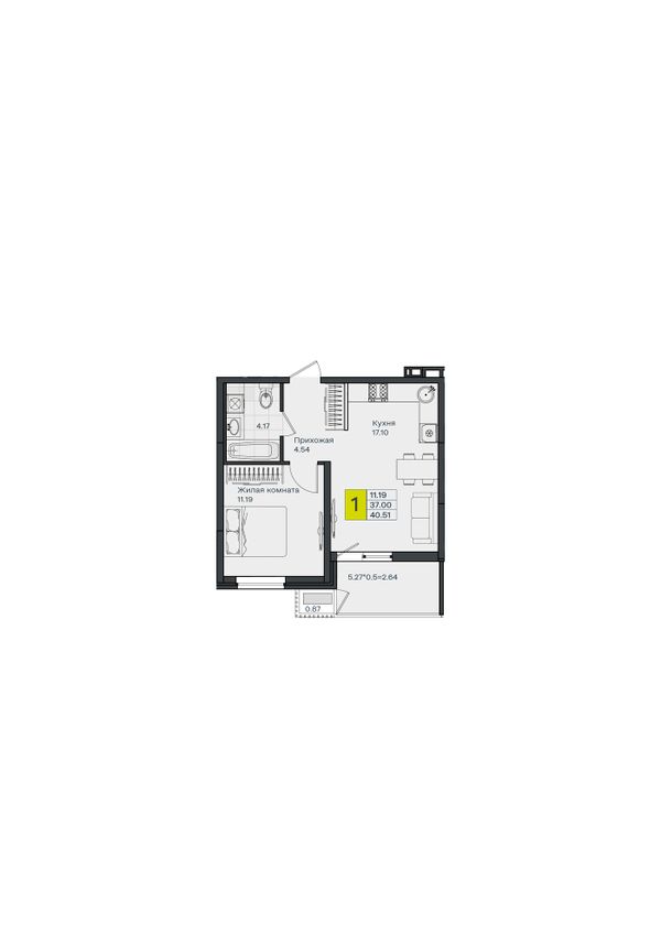 1-комнатная — 40,51 м²