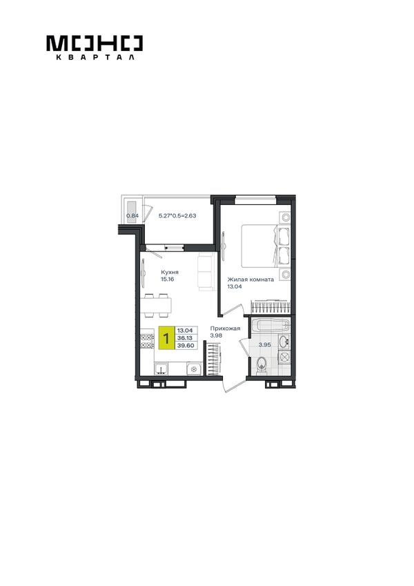 1-комнатная — 39,6 м²