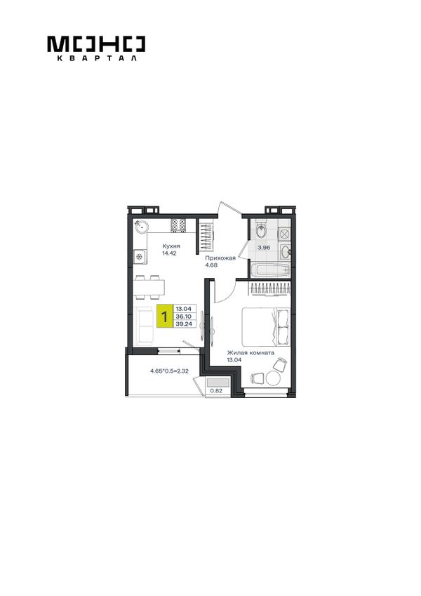 1-комнатная — 39,24 м²