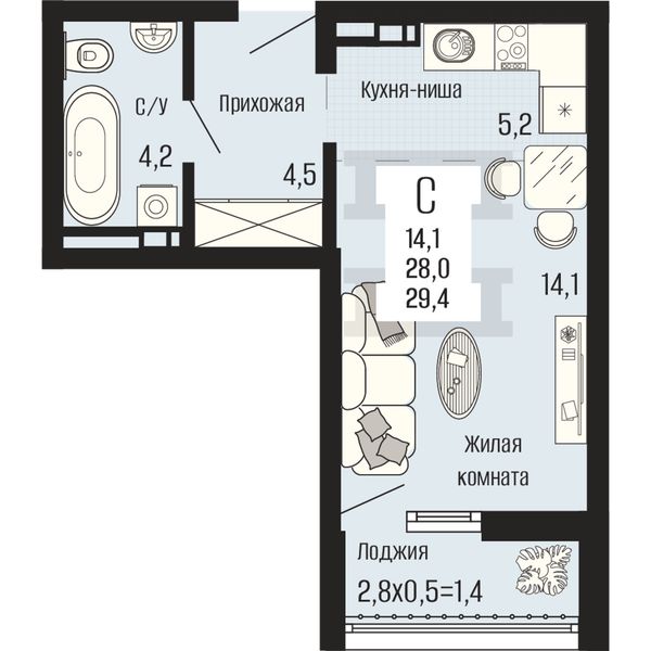 Студия — 29,4 м²