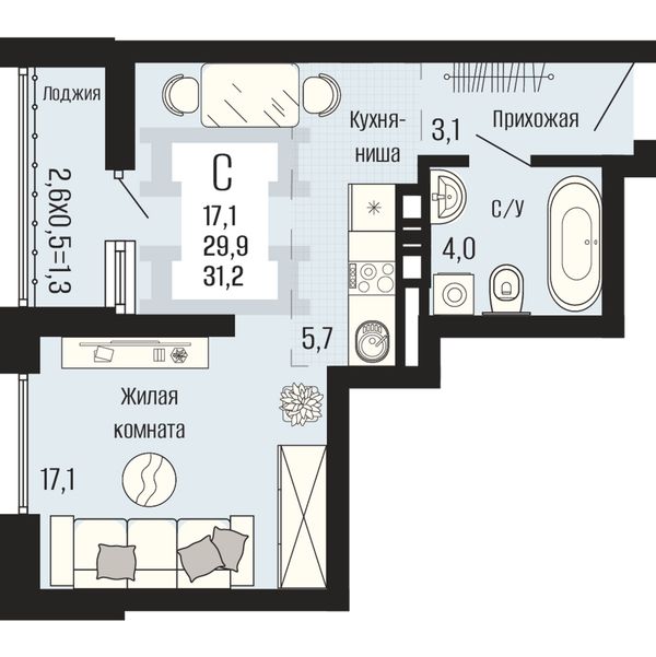 Студия — 31,2 м²