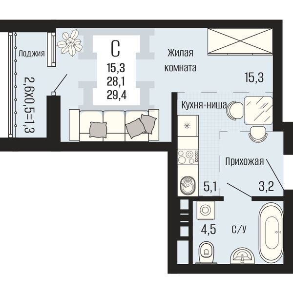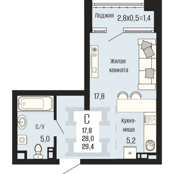 Студия — 29,4 м²