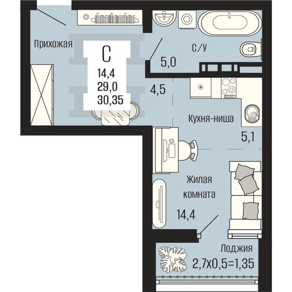 Студия — 29,4 м²