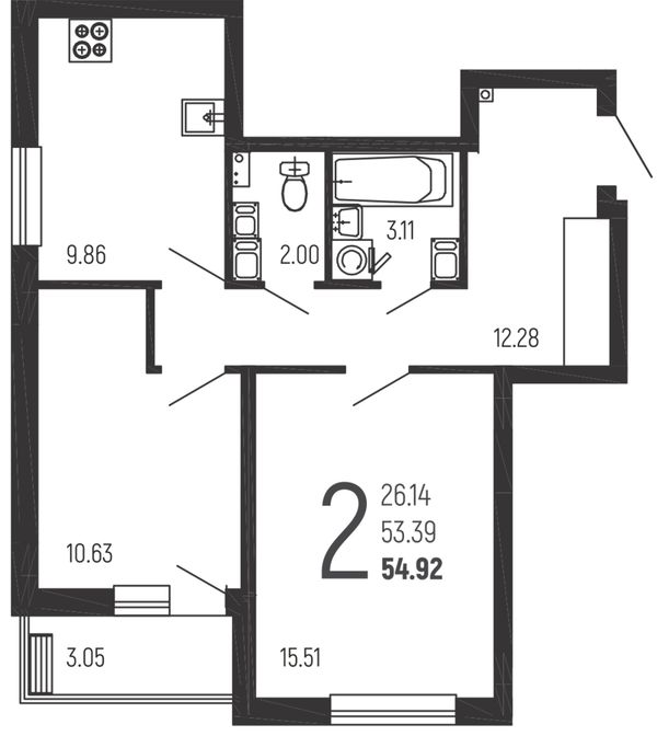 2-комнатная — 54,92 м²