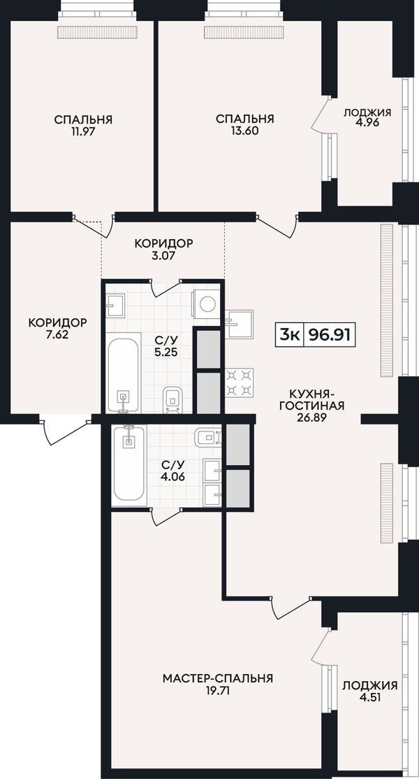 3-комнатная — 96,91 м²