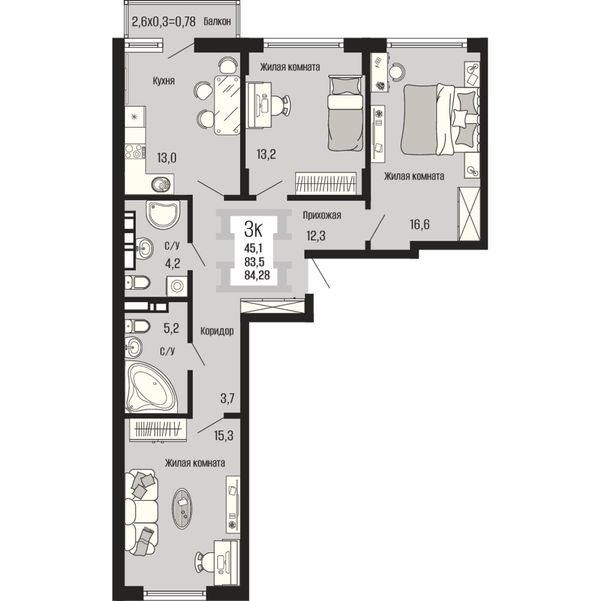 Купить трёхкомнатную квартиру в ЖК «Половецкий» в Донецке