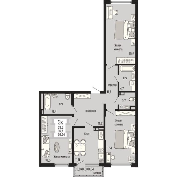3-комнатная96,54 м²Донецкая Народная Республика, Донецк, улица Независимости