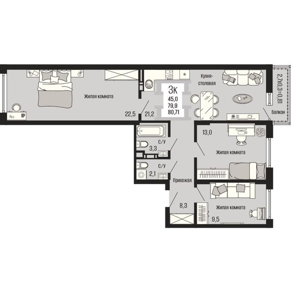 3-комнатная80,71 м²Донецкая Народная Республика, Донецк, улица Независимости