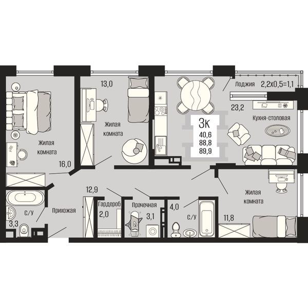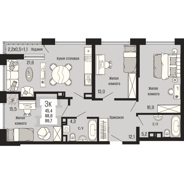 Купить трёхкомнатную квартиру в ЖК «Половецкий» в Донецке