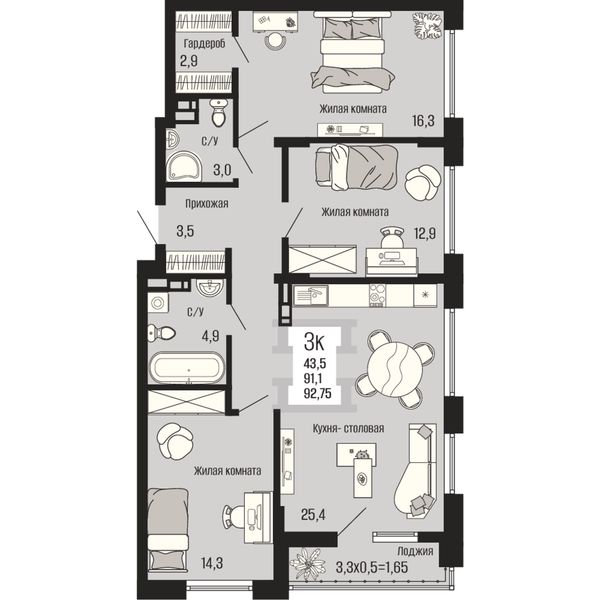 3-комнатная92,75 м²Донецкая Народная Республика, Донецк, улица Независимости
