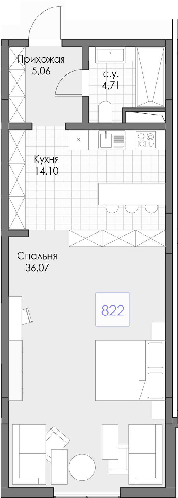 1-комнатная — 59,94 м²