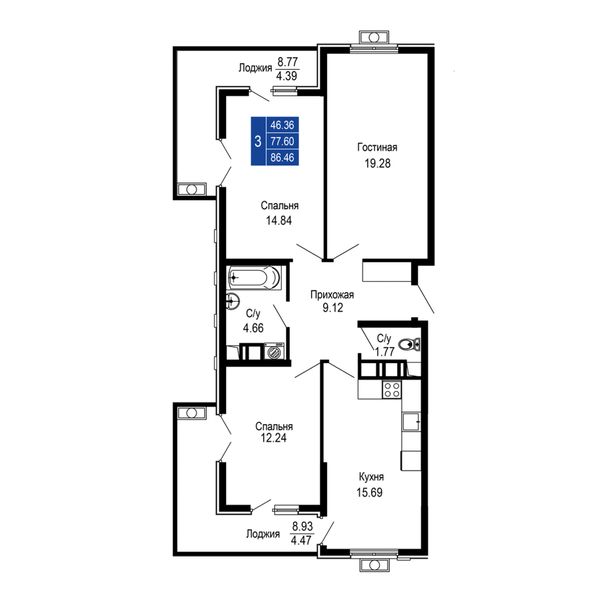 3-комнатная — 86,46 м²