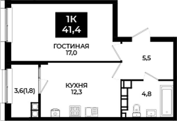 1-комнатная — 41,4 м²